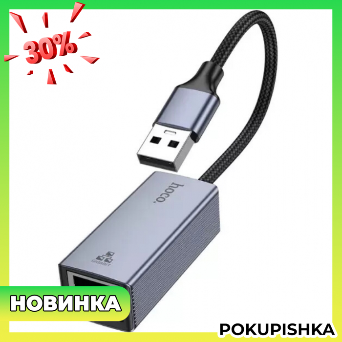 Hoco UA37 – это адаптер USB Ethernet, который позволяет подключить любое устройство к Интернету для более быстрой загрузки файлов и онлайн видео, игр.