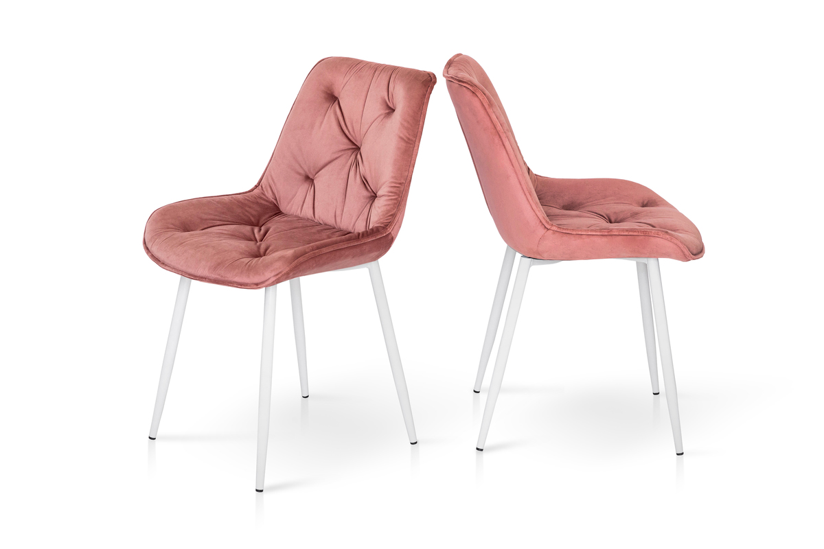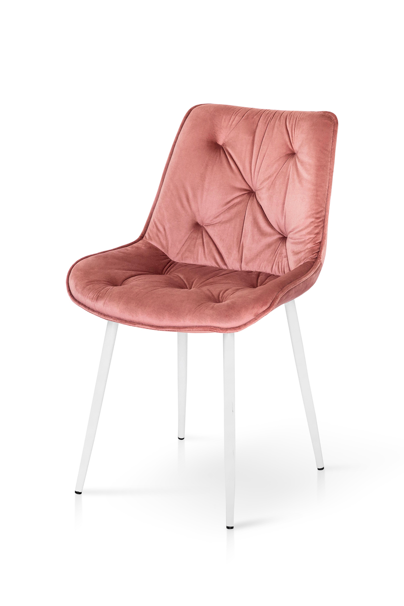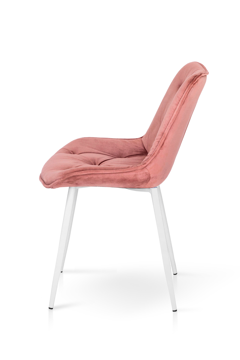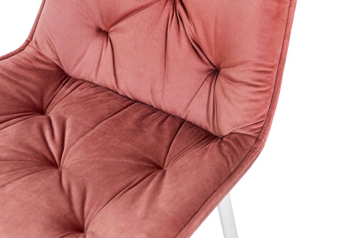 Белый цвет и пудровый велюр придают стулу современный и стильный вид, который легко сочетается с различными цветовыми схемами интерьера. Металлические ножки не только обеспечивают стабильность, но и добавляют современный акцент в общий дизайн.
