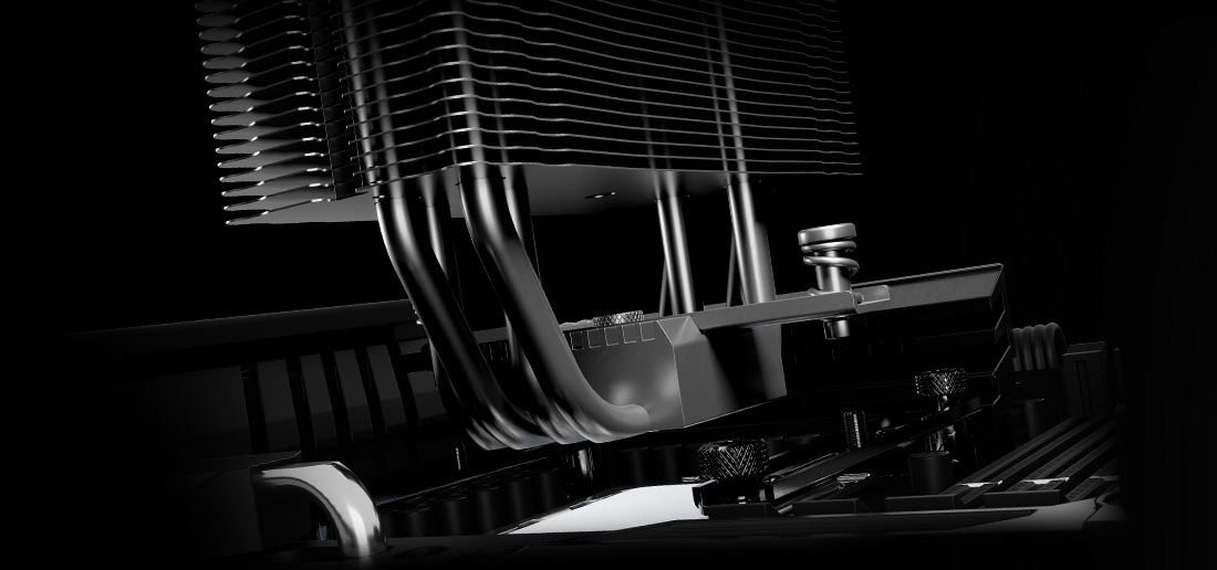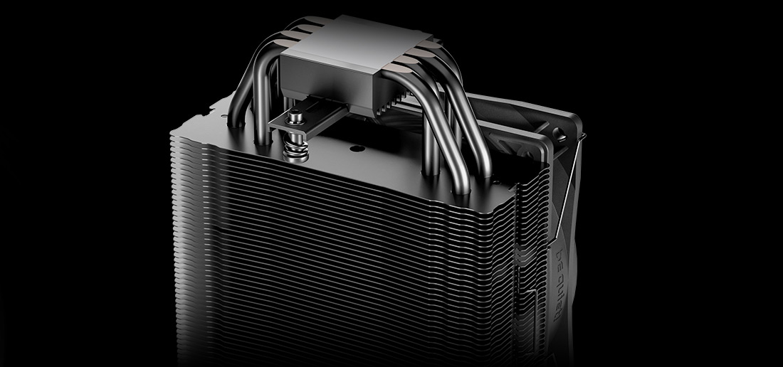 Четыре черные, в соответствии с цветом радиатора, 6-мм тепловые трубки Pure Rock 3 оптимально распределяют тепло по алюминиевым ребрам, обеспечивая высокую производительность охлаждения. Большой радиус изгиба обеспечивает максимальную производительность тепловых трубок.