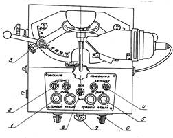 Для того, чтобы исключить одновременность автоматических колебаний и миганий, необходимо следить, чтобы при работе автоматом на МИГАНИЕ переключатели колебаний 4 были установлены в положение ОТ РУКИ, а при работе автоматом на КОЛЕБАНИЕ переключатели миганий 2 должны стоять в положении ОТ РУКИ.