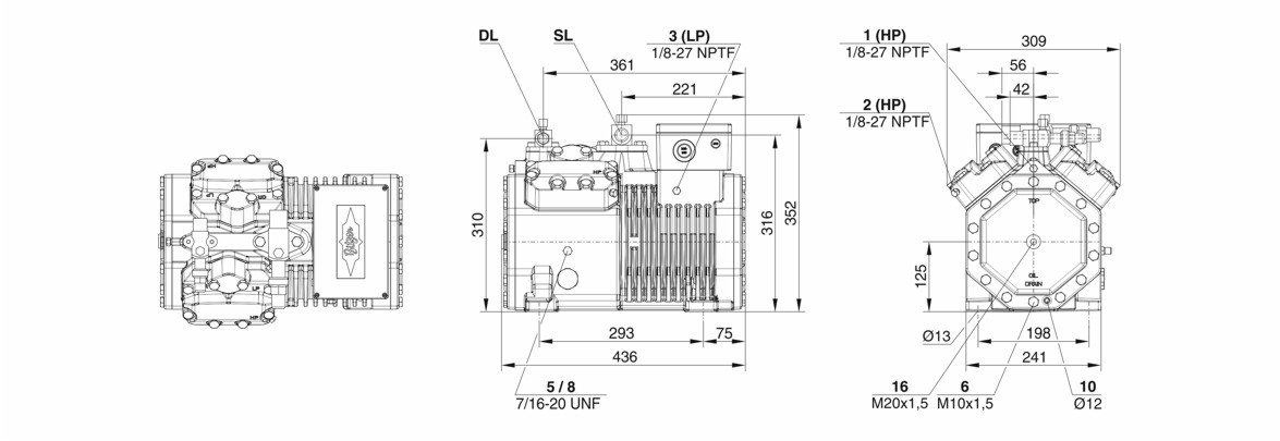 Схема-чертеж компрессора Bitzer 4DES-7Y: