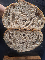 На основі цього борошна печу хліб на живій заквасці. На фото вона - щойно з холодильнику, і навіть на холодній добре все видно. Вже другий раз беру 5-кілограмову упаковку. Ще додаю інтегральне і спельтове (тут же брала) - виходить прекрасний хліб: пружний, м'який, ароматний; в холодильнику зберігається до двох тижнів без втрати якостей.