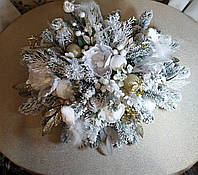 Перебрала багато варіантів. Спинилася на цьому. Композиція виглядає дуже гармонійно. І розмір такий, що зручно і на стіл, і на полицю поставити. З чим треба бути обережним, так це зі свічкою. Вона втоплена в мішуру. Тому треба контролювати, коли загасити вогонь. Без нагляду не залишати! Перша композиція у мене згоріла в перший же вечір використання. Довелося замовляти таку ж саму вдруге :-). Але іншу я не захотіла. Ця дуже гарна!