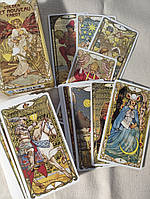 Художня робота, комп'ютерна графіка, яскравість кольорів просто СУПЕР! Зріз рівний. До колоди додається стандартна коробочка ( яка може коштувати до 100гр) і мішечок із органзи. Колода дуже цікава - є додаткові карти. Але я б добавила більш ущільнену ламінацію, щоб краще тасовалась. Тоді б ціна виросла на 100 - 150 грн більше. Хотілось можливість замовити коробочку як у Mystic silk ( ціна 300гр.) Замовленням задоволена. Дякую за можливість мати красиву і цікаву колоду! Усіх Вам Благ, Радості і Процвітання!