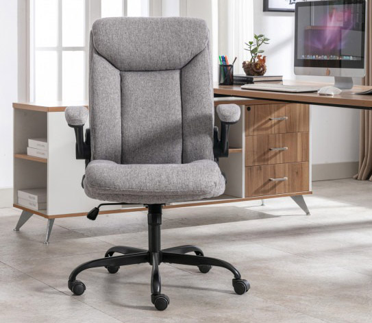М’яке сидіння з наповнювачем із пінополіуретану не втрачає форми з часом. Зносостійка тканинна оббивка та міцні пластикові підлокітники з м’якими вставками гарантують довгий термін служби. Крісло витримує до 120 кг, а дерев’яна рама з металевим хрестовиною забезпечує стійкість конструкції.