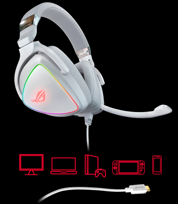 Замість 3,5-міліметрового аудіороз'єму гарнітура ROG Delta White Edition володіє інтерфейсом USB-C, а до комплекту її постачання входить перехідник USB-C - USB-А 2.0, що дає змогу без проблем під'єднати її практично до будь-якої ігрової платформи, зокрема до ПК, консолей і мобільних гаджетів.