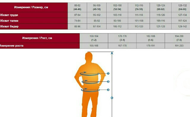 Розмірний ряд: 44-46, 48-50, 52-54, 56-58, 60-62, 64-66