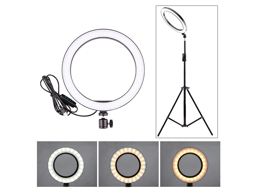 Селфі кільце Ring Light світлодіодне USB - ця кільцева лампа для фотозйомки. Світіння лампи м'яке і не має тіней, тому лампа ідеальна для проведення студійної зйомки.