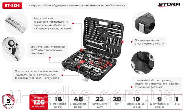 Набір інструментів Cr-V STORM INTERTOOL ET-8126
