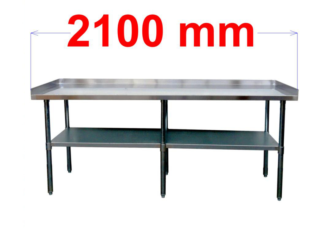 Новий робочий стіл з нержавіючої сталі 2100 x 600 x 850 мм з бортиками
