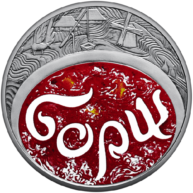 На реверсі монети розміщено стилізовану композицію, що наповнена традиційним українським колоритом та побутом: у центрі зображено тарілку з борщем, що неначе “бурхливе озеро” символізує глибинну українську культуру і традиції, напис – БОРЩ (елемент оздоблення – тамподрук).