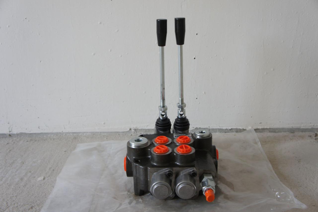 Пропонуємо до вашої уваги болгарський високоякісний гідророзподільник, тип Р40 моноблокової конструкції 2-секційний із номінальною подаванням оливи від 40-60 л/хв, виробництва Болгарії, Badestnost з ручним керуванням на 3 положення та пружинним поверненням ручки в нейтральне положення. Ці гідророзподільники працюють від насосів НШ10, НШ16, НШ32 та ін. аналогів із номінальною подаванням оливи до 60 л/хв.