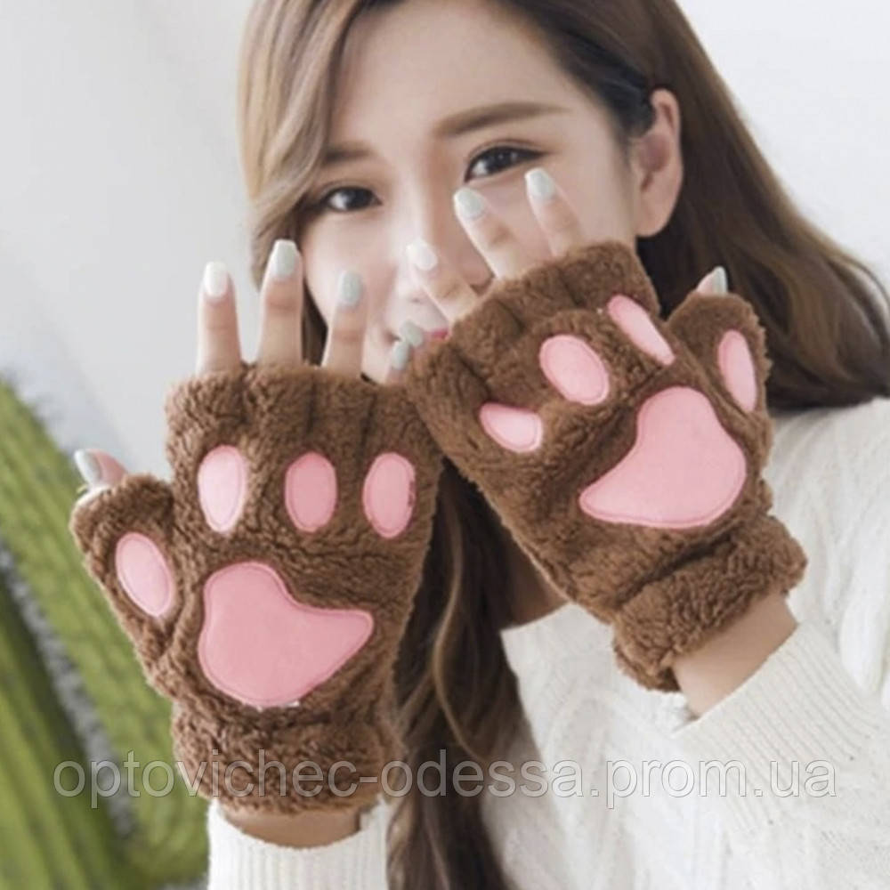 Рукавички мітенки Рукавички без пальців Котячі лапки - це милі та пухнасті мітенки, у вигляді котячих лапок, виконані з плюшу, відмінний вибір для тих, хто цінує комфорт та тепло в холодні дні.