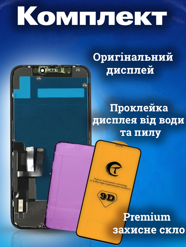 В комплект входить: Дисплей оригінальний, Оригінальна проклейка дисплея від пилу і вологи.