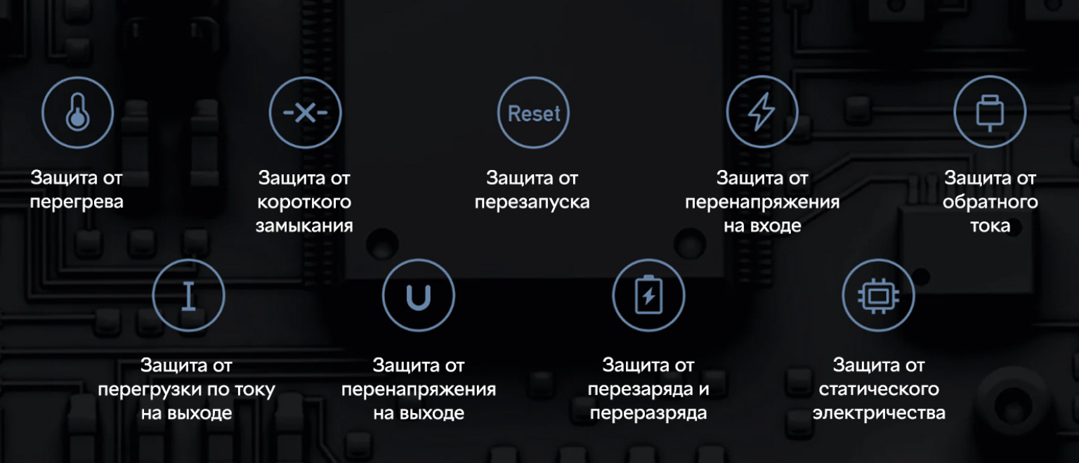 Вбудований мікроконтролер не допускає випадкового пошкодження пристрою. Він автоматично перериває подавання живлення у разі перевантаження, перегрівання або короткого замикання.