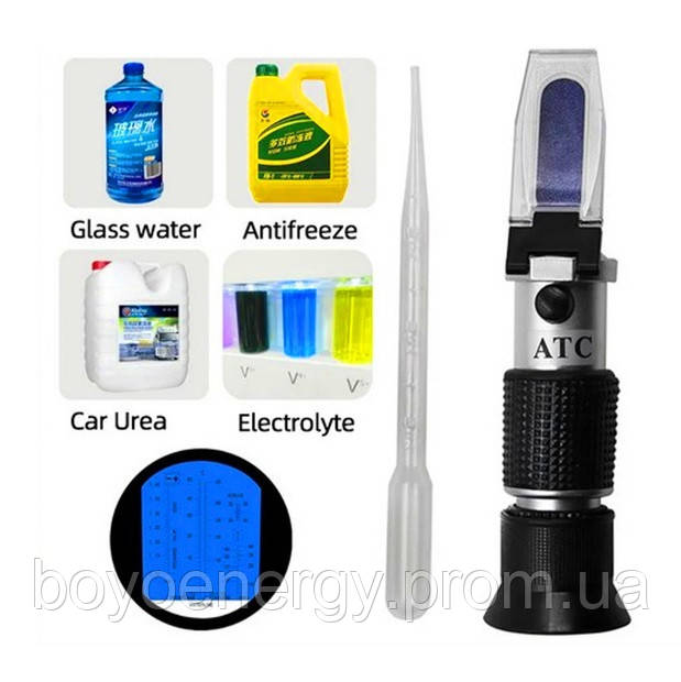 Призначений для визначення концентрації та температури замерзання етиленгліколю та пропіленгліколю в антифризі, теплоносіях, електроліті, склоомивальної рідини. Дає змогу проводити експрес-аналіз температури кристалізації антифризу та вимірювання щільності електроліту в акумуляторних батареях, температури замерзання будь-яких теплоносіїв і склоомивних рідин. Прилад спеціально розроблений для визначення концентрації гліколів і води в антифризах і, крім того, забезпечений додатковою шкалою для контролю щільності акумуляторного електроліту.