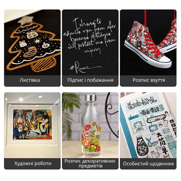 Маркери підходять не тільки для нігтів. Ними можна розписувати скло, тканину чи аксесуари. Ви зможете використовувати їх для декору, творчості чи навіть персоналізації речей