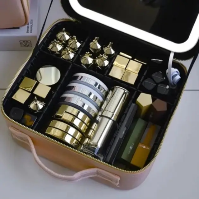Практична та стильна, ця косметичка створена для тих, хто завжди хоче виглядати ідеально. Вбудоване сенсорне дзеркало з LED-підсвічуванням забезпечує зручність у використанні, а міцний водонепроникний матеріал захищає вміст. Її рожевий колір додає вишуканості, а компактний розмір робить аксесуар зручним для мандрівок.