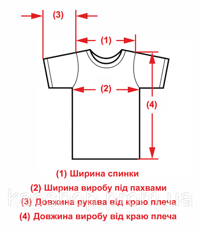 | Міжнародний розмір | Український розмір | Ширина, см | Довжина, см | Ширина в спині,см | Довжина рукава, см |