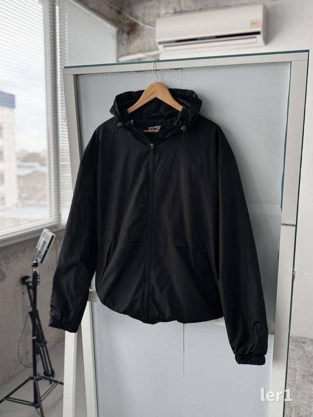 Чоловіча чорна куртка-вітровка осіння весняна на підкладці, Демісезонна легка вітровка чорного кольору плащівка з капюшоном високої якості