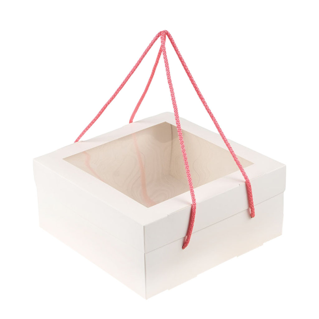 Подарункова коробка біла кришка+дно, з вікном, виготовлена з целюлозного картону, розміром 248*248*110 мм для упаковки подарунків, косметики, тортів, бенто-тортів.