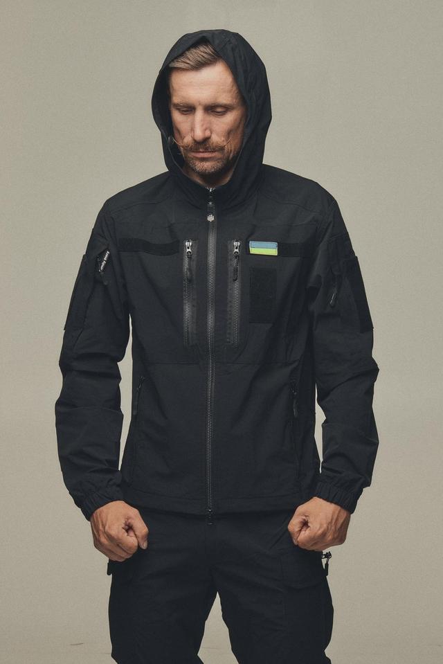 Куртка, яка розтягується і не сковує рухи, не пропускає вологу і водночас дихає. Куртка має 6 кишень, капюшон, шеврони, на манжеті гумка для щільного прилягання і кишені, що провітрюються, з сіткою під пахвами, якщо потрібно знизити температуру після навантаження. Якісна фурнітура та тканина рівня ТОП робить виріб унікальним при використанні та майже не має аналогів!