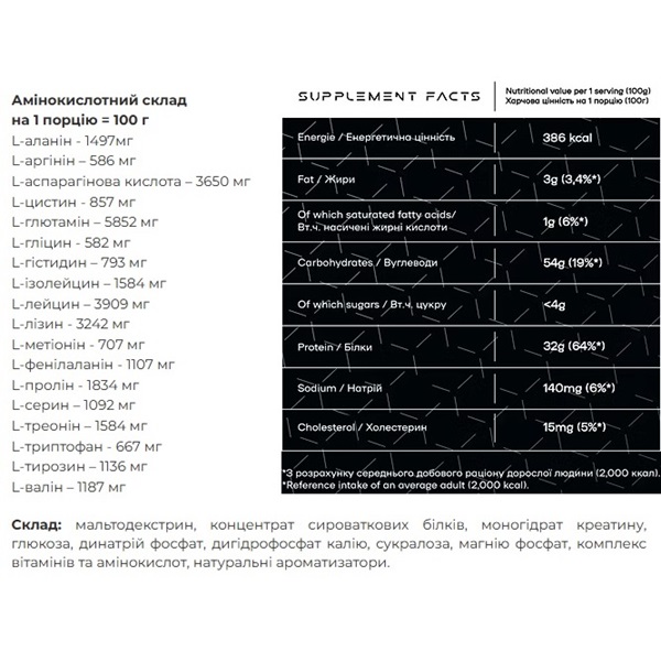 Ключевые преимущества гейнера Carbo Mass Gainer:Мальтодекстрин, концентрат сывороточных белков, моногидрат креатина, глюкоза, динатрий фосфат, дигидрофосфат калия, сукралоза, магния фосфат, комплекс витаминов и аминокислот, натуральные ароматизаторы.