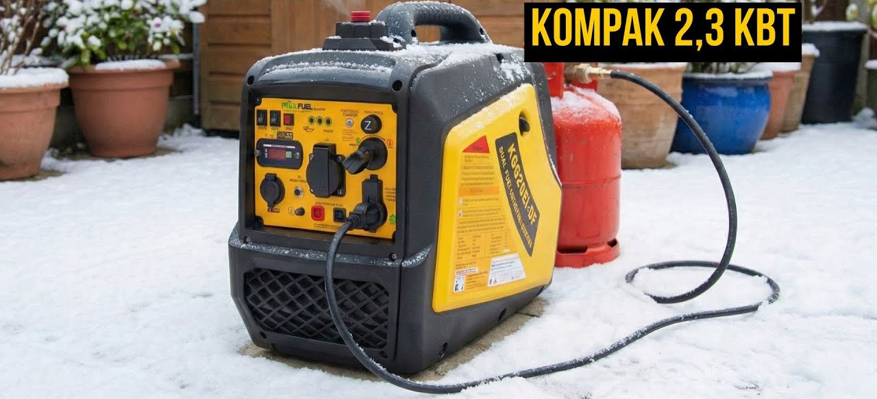 Інверторний генератор Kompak KGG20Ei-DF забезпечує максимальну потужність 2300 Вт і працює на базі 4-тактного двигуна OHV об’ємом 79,8 см³ потужністю 3,5 к.с. з ручним запуском. Інверторна технологія формує стабільну напругу, співставну з мережею, що дозволяє безпечно підключати чутливу техніку. Компактний корпус до 30% менший за стандартні аналоги, що поєднує продуктивність і зручність розміщення.