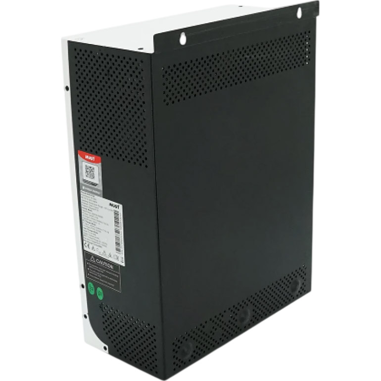 MUST PV18-3024VMPK — це автономний гібридний інвертор потужністю 3 кВт, який поєднує синусоїдальний інвертор, мережевий зарядний пристрій та MPPT-контролер заряду в одному корпусі. Пристрій призначений для створення резервних і автономних систем живлення з можливістю роботи від акумуляторів, сонячних панелей, електромережі або генератора. Інвертор підтримує 24-вольтову систему (2×12В АКБ або 1×24В), забезпечує чисту синусоїду та дозволяє підмішувати енергію від різних джерел для максимальної ефективності.