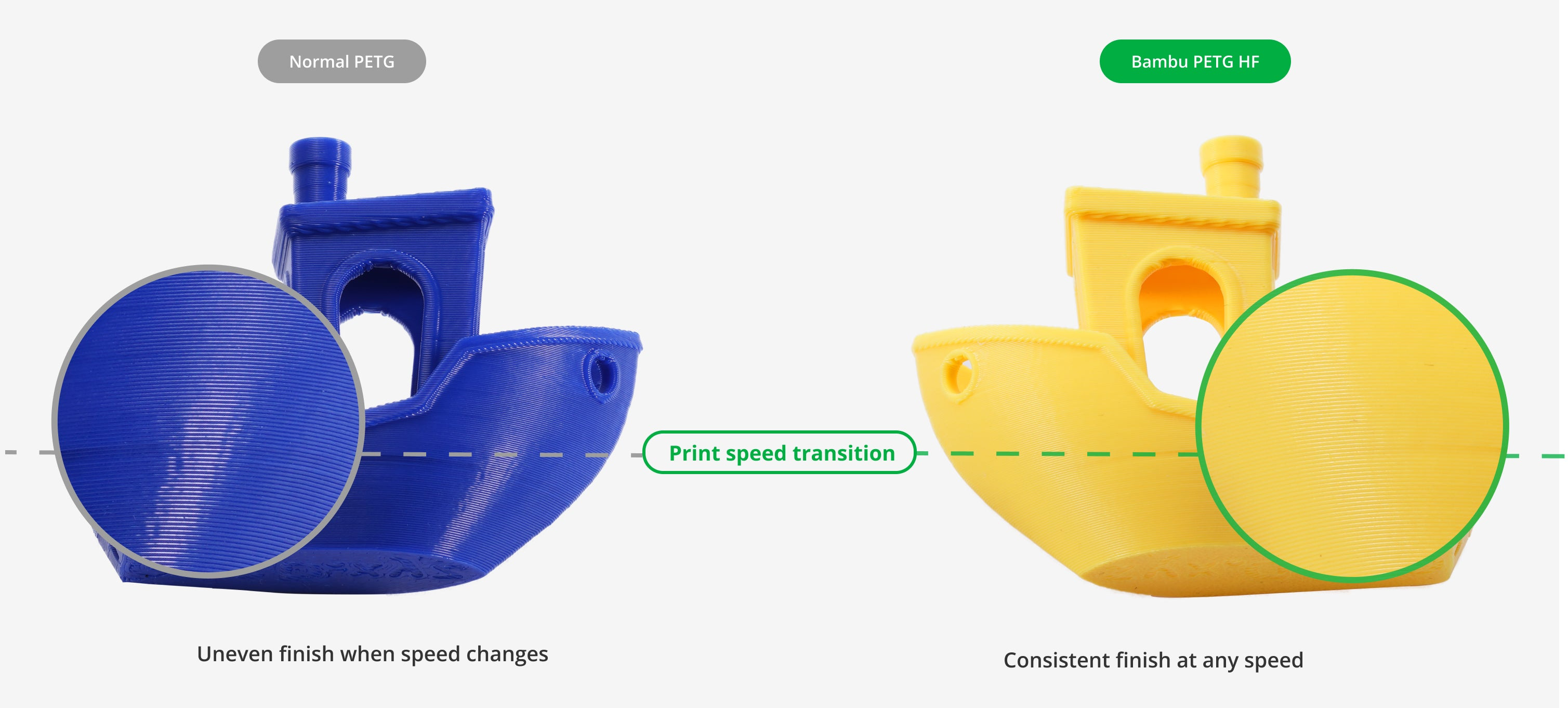 PETG HF забезпечує чудову гладкість текстури та постійну глянцевість на будь-якій швидкості друку, що дозволяє досягти рівномірності та чітких деталей у кожному надрукованому виробі. Завдяки таким властивостям, результат завжди виглядає бездоганно і має високу якість.