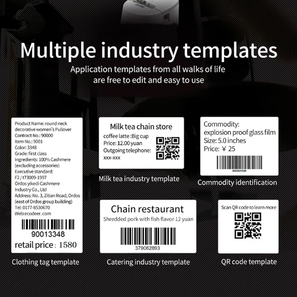 Типи 1D штрих-кодів, що друкуються: CODE128, EAN128, ITF, CODE39, CODE93, EAN13, EAN13+2, EAN13+5, EAN8, EAN8+2, EAN8+5, CODABAR, POSTNET, UPC-A, UPCA+2 +5, UPC-E, UPCE+2, UPC-E+5, CPOST, MSI, MSIC, PLESSEY, ITF14, EAN14
