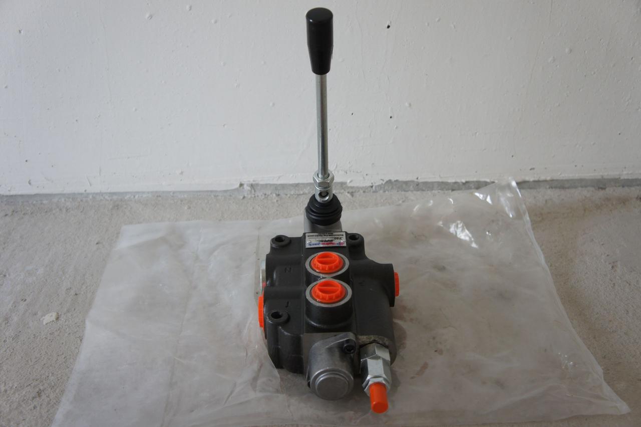 Високоякісний імпортний гідророзподільник типу Р40 моноблоковий 1-секційний із номінальною подаванням оливи від 40-60 л/хв, виробництва Badestnost з ручним керуванням на 3 положення та пружинним поверненням ручки в нейтральне положення. Ці гідророзподільники працюють від насосів НШ10, НШ16, НШ32 та ін. аналогів із номінальною подаванням оливи до 60 л/хв, ідеальний варіант для невеликого дровокола (колона).